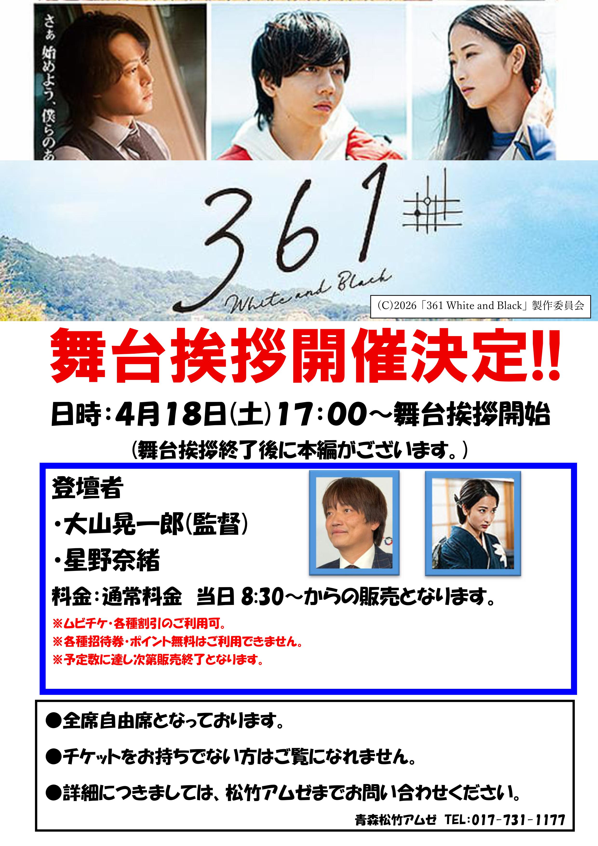 サンロード青森専門店街・青森松竹アムゼ シネマ・スーパー・フライデー 毎週金曜日に抽選で劇場ご入場券プレゼント! 毎週20名様にプレゼント!【特別入場券】 又は はずれた方全員に【特別割引券】 ☆抽選条件:抽選日より1週間以内(前週土曜日~金曜日まで)の サンロード専門店街での税込2000円以上のレシートをご提示ください。 ※レシート1枚につき、1回の抽選とさせていただきます。 ☆実施日:毎週金曜日 午後1時~午後8時迄 ☆抽選場所:サンロード青森地下1階 サンロード青森 チケット売り場 対象レシート:サンロード青森専門店街、青森松竹アムゼ 対象外レシート:イオン青森店、イオン店内テナント、総合サービスカウンター、郵便局 日専連サービスセンター、ハピルス、ソフトキャンパス、クリニックセンター、RAB学園、 タイトーステーション、催事販売、その他金券のお買い上げたレシート |